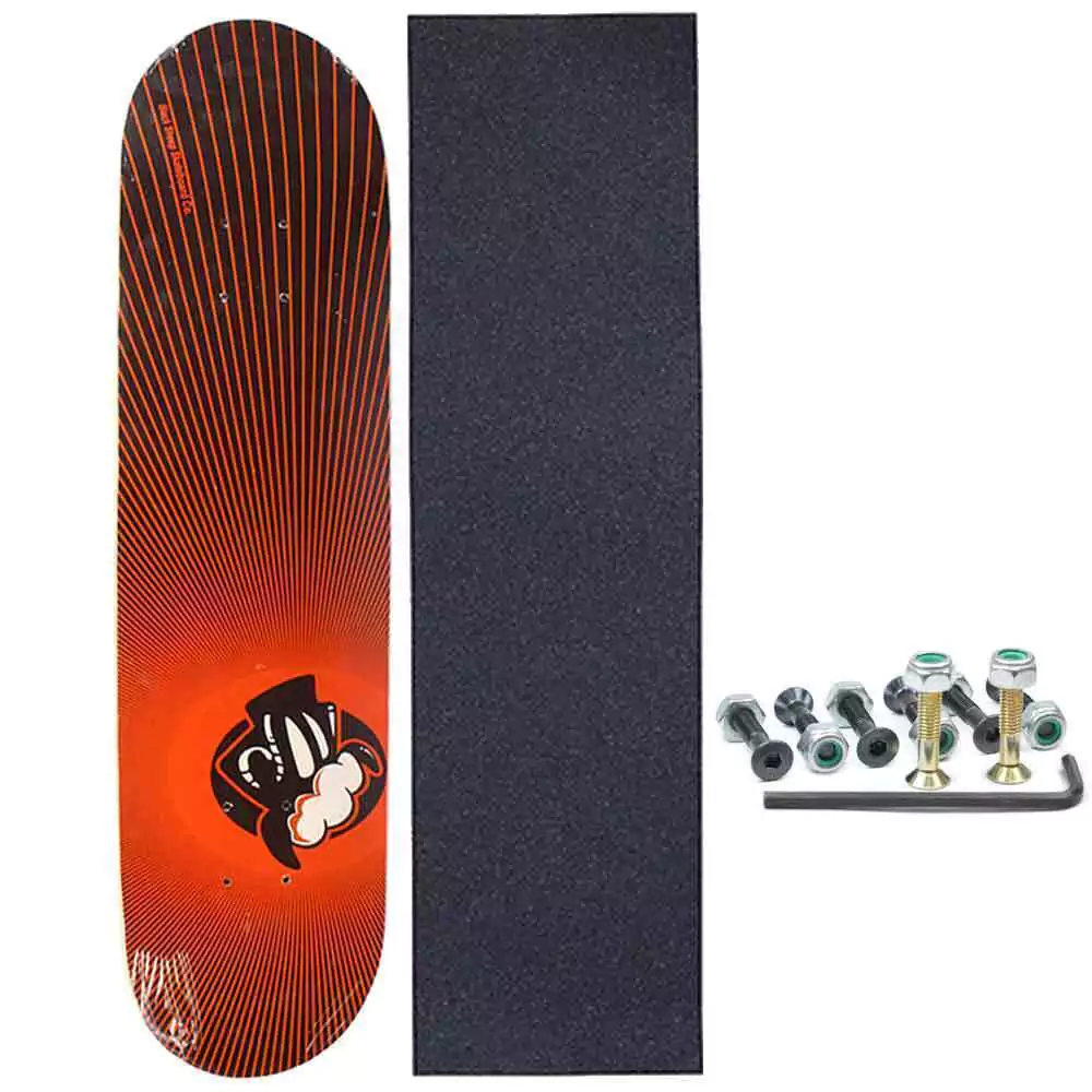 Shape Black Sheep foi desenvolvido com matéria prima da melhor qualidade que são usadas nos shapes nacionais. O Shape contém 7 folhas de Marfim, colado com resina Epoxi dando mais resistência e evitando abertura Whellbase: 35 cm (Entre eixos) Material: Produzido com 7 lâminas selecionadas de MarfimIndicação: Street Origem: NacionalPeso Aprox.: 1.3 kg Furação feita com cabeçote múltiplo, permitindo o ajuste preciso dos parafusos de base com ótimo acabamento. Jogo de Parafusos 3/8 mesma medida dos parafusos americanos, feito em alumínio de alta resistência - 6 Parafusos Pretos e 2 Parafusos Coloridos ( cores de acordo com nosso estoque ) para marcação de base.Lixa Nacional de ótima qualidade e aderência. É uma das melhores lixas nacionais do mercado, é o acessório indispensável que possa ter controle e aderência total durante as manobras. Esta lixa possui granulação ideal e evita o desgaste dos calçados. Esse produto conta com colagem autoadesiva e recorte tradicional.